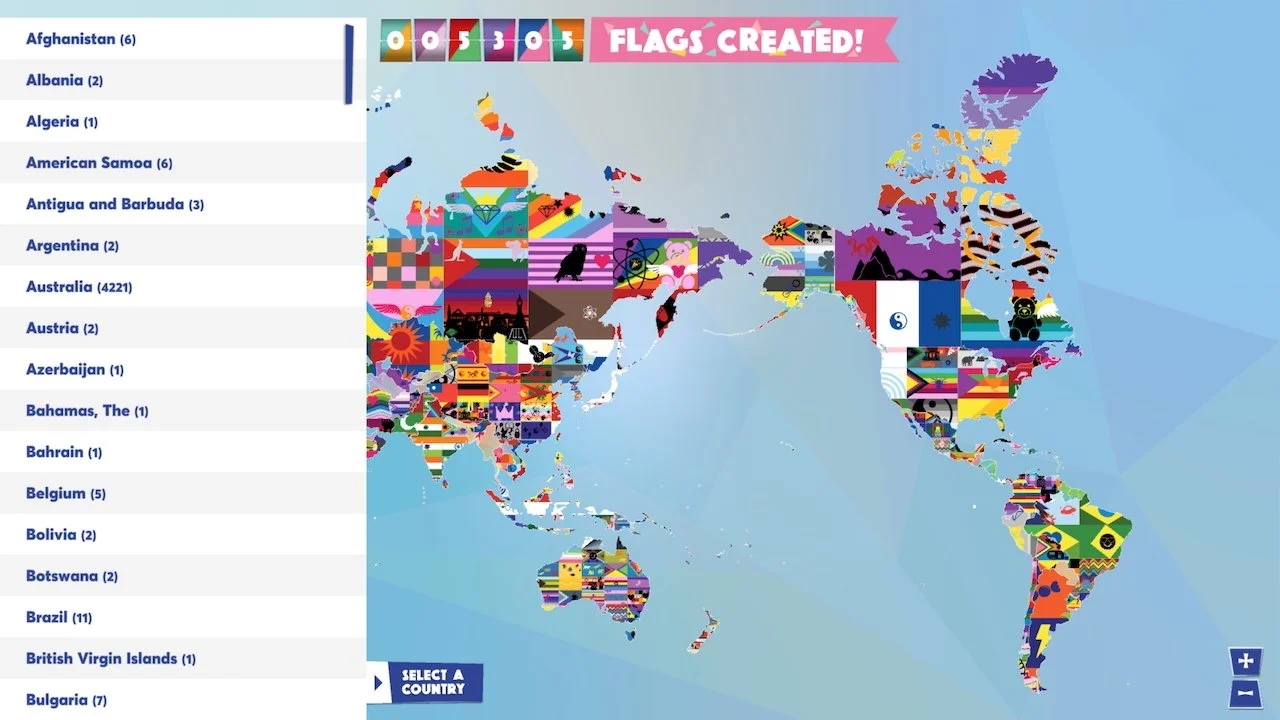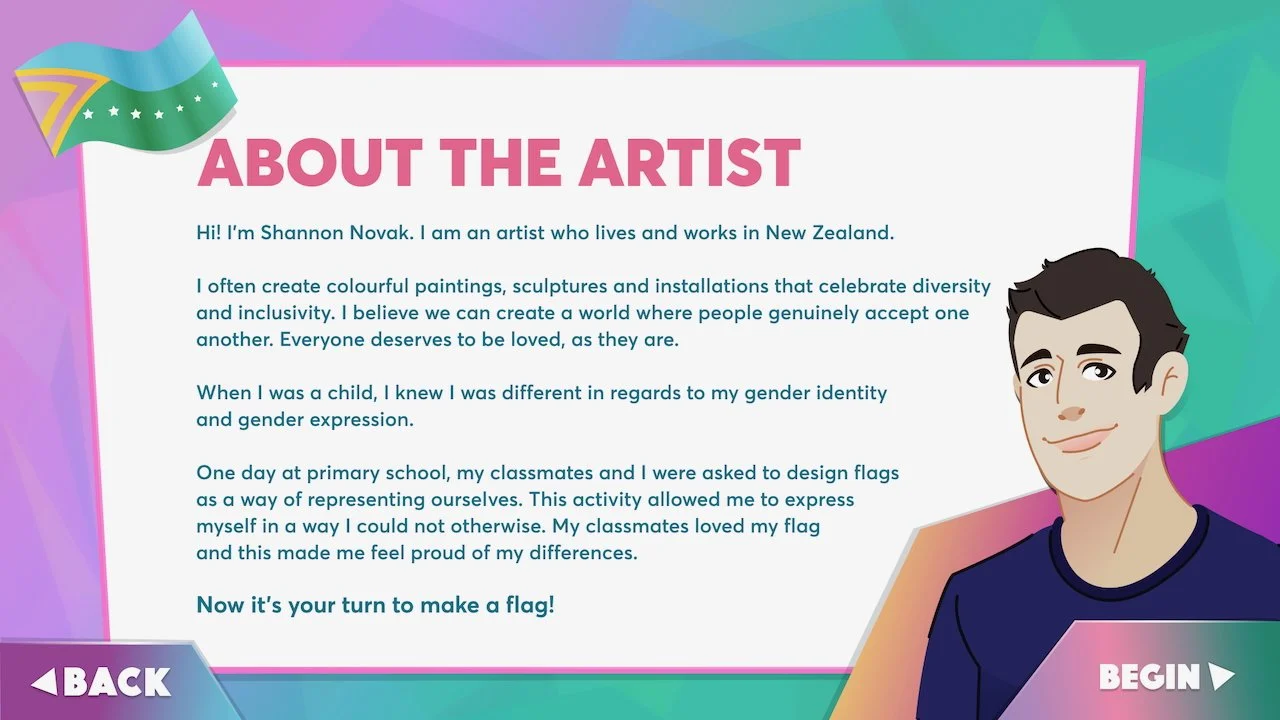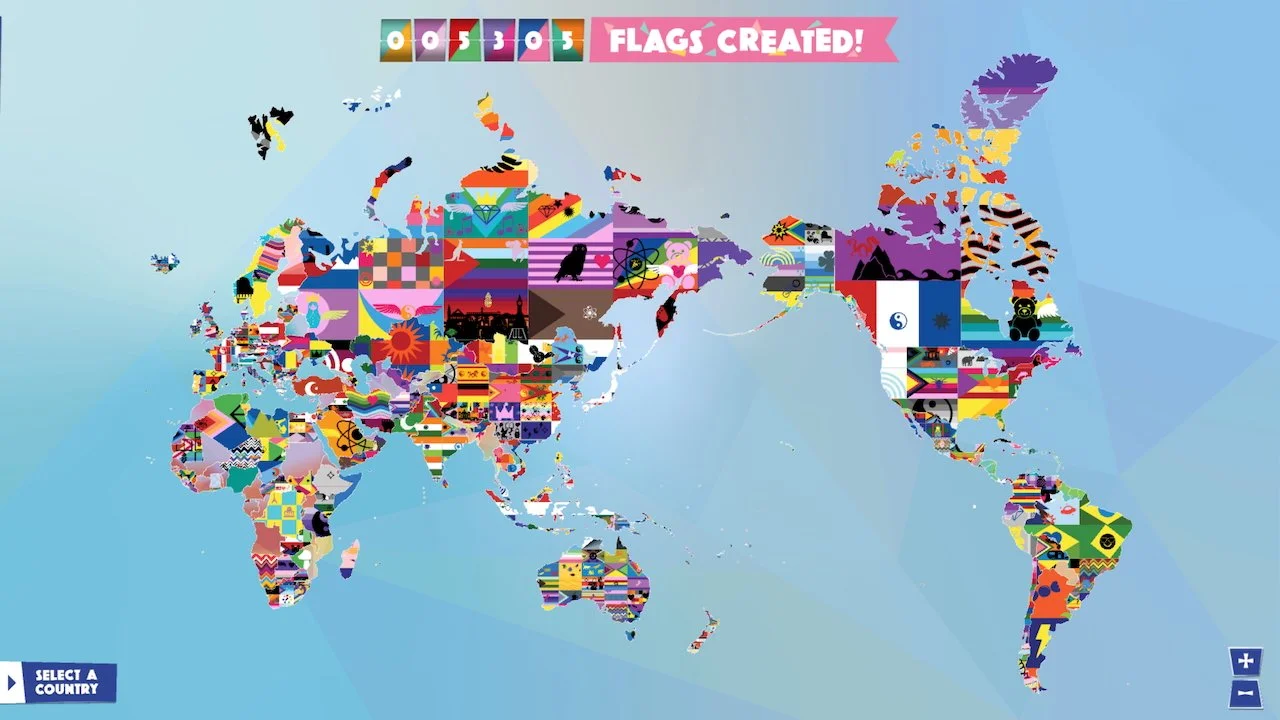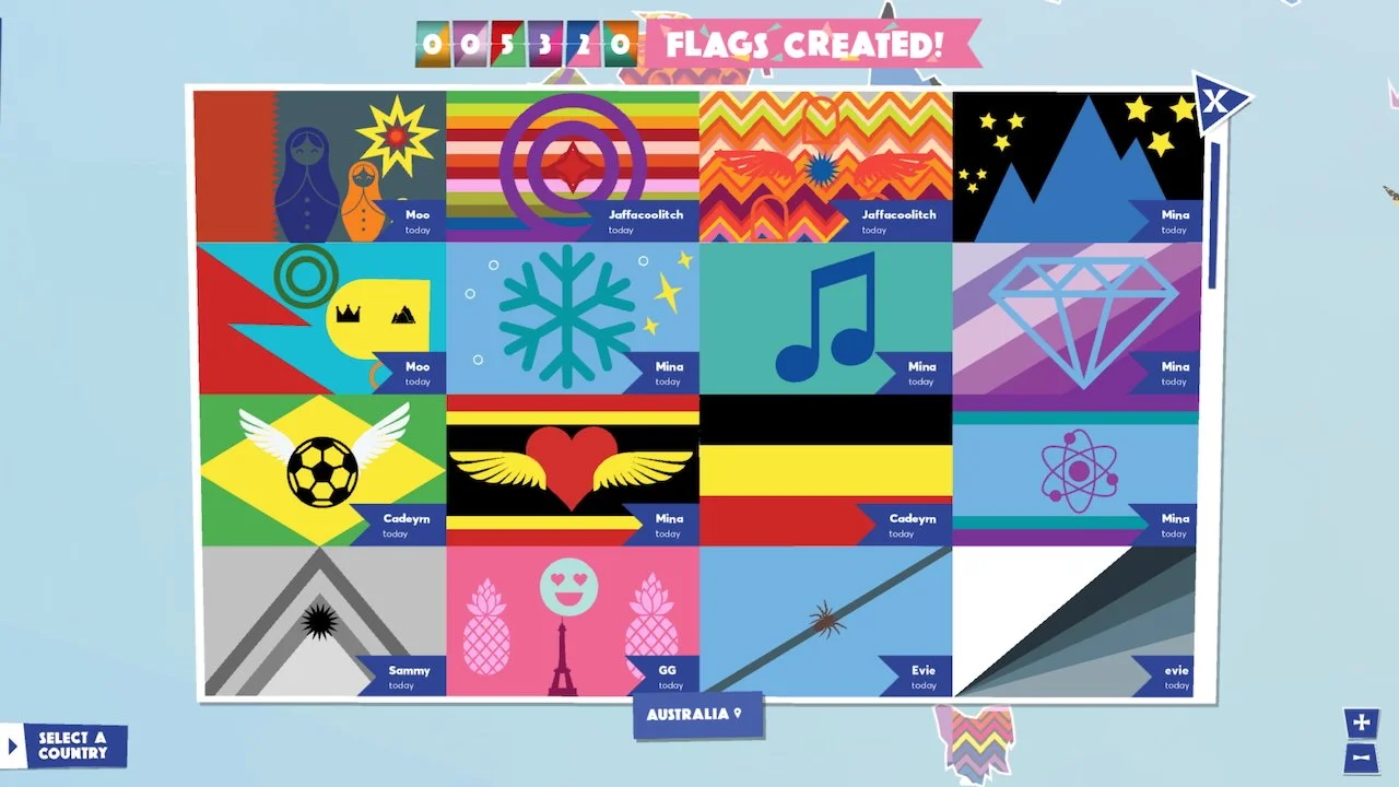 Celebrate You is an interactive work where people can create their own flag from a library of shapes and colours. It was available onsite at QAGOMA through interactive touch screens and online through the QAGOMA website. When people completed their flag they could save and share this work to a world map showing a meta-view of all flags created to date worldwide.