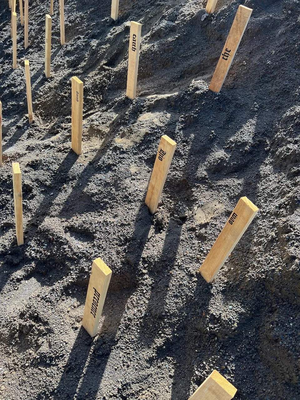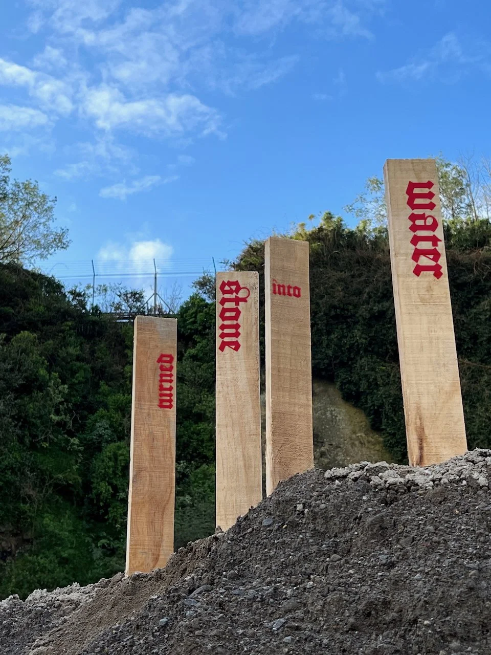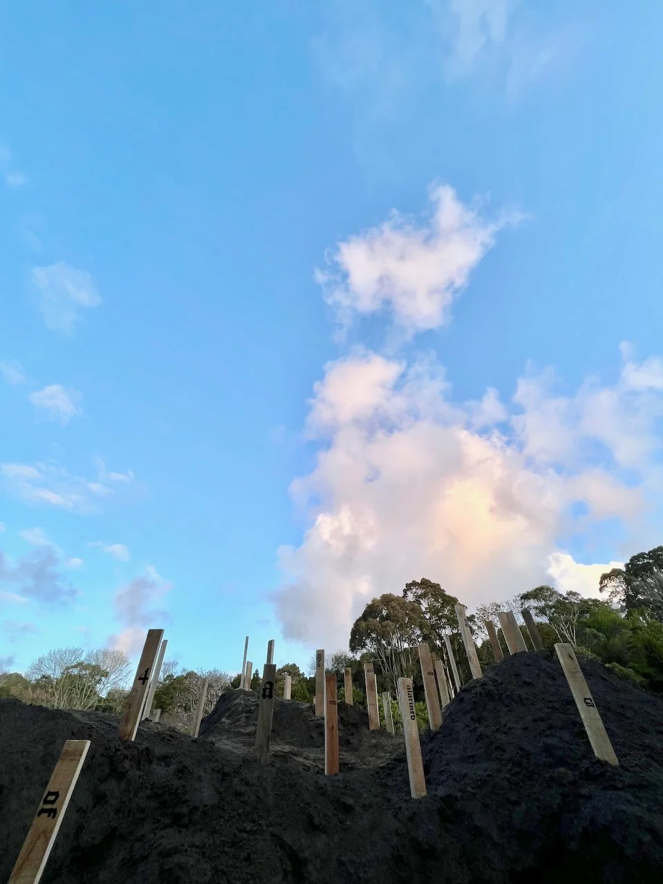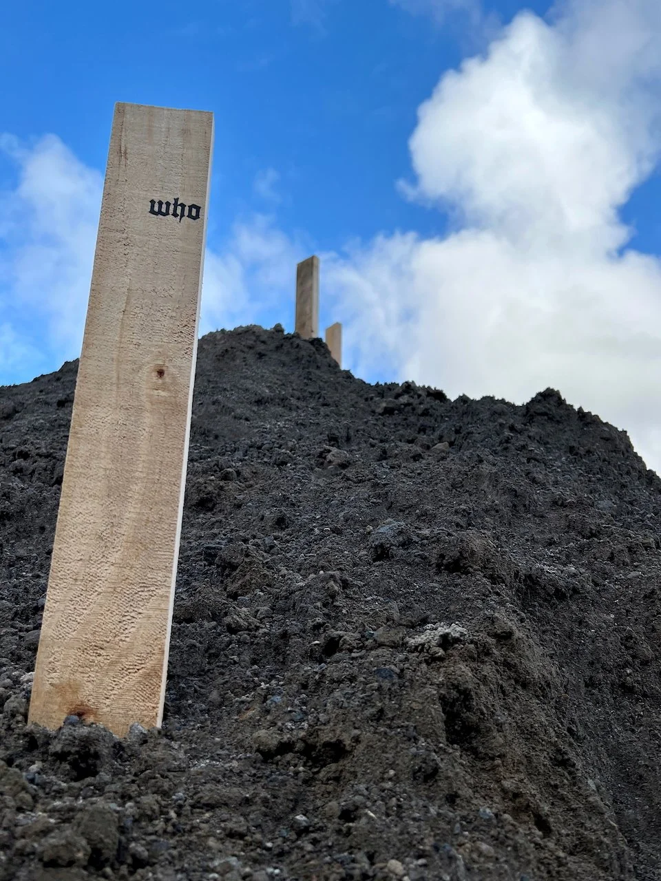 Sited at the New Plymouth Prison quarry, 114 pine stakes are driven into a mountainous pile of soil, representing the 114 gay men. Each stake bears a word or number taken from Psalm 114 in the Bible which happens to have 114 words/numbers in the Modern English Version (MEV). One central theme in Psalm 114 has been described as release from captivity.