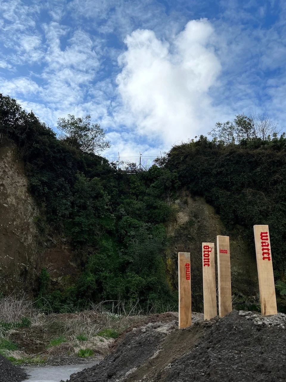 One entrance to the New Plymouth Prison quarry is demarcated with five large entry stones. At the time of this project (2022) these were some of the last surviving artifacts of the quarry that were not being preserved nor planned to be preserved. This work highlights the potential erasure or loss of heritage linked to queer communities and what we might do to avoid this.