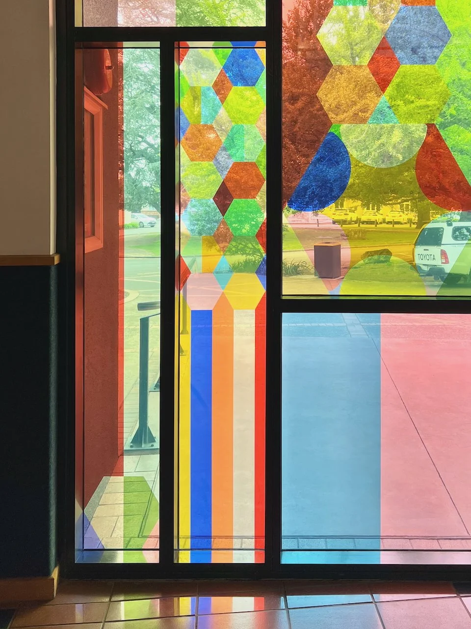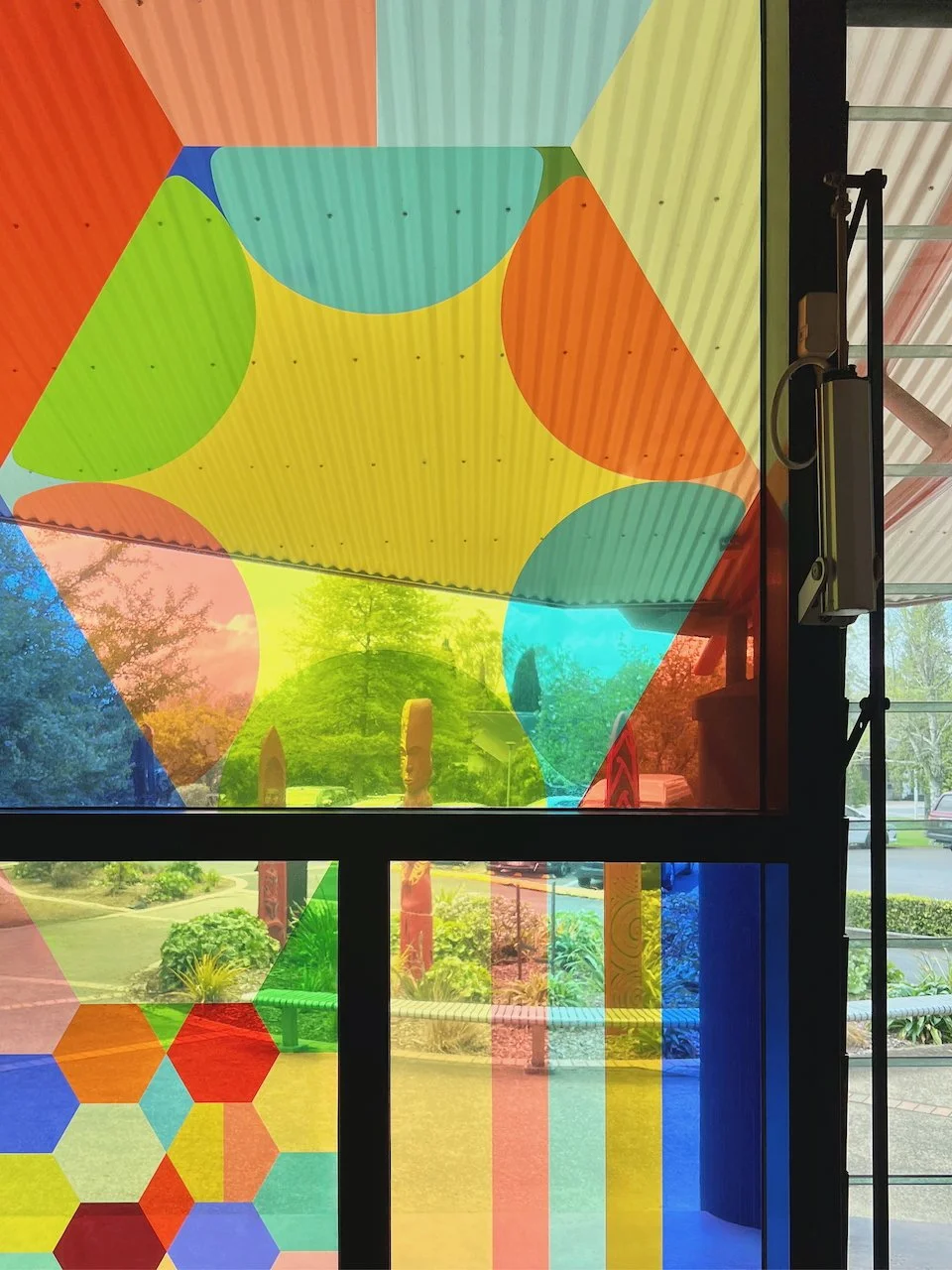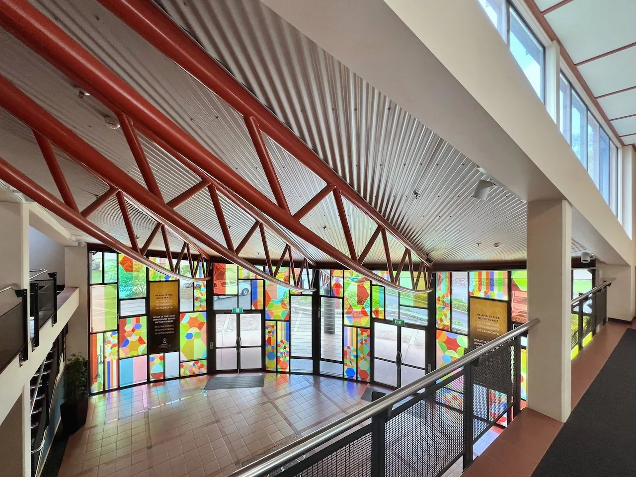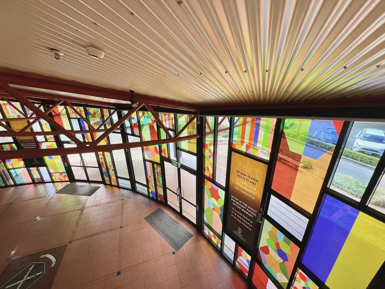 Kinship is a work commissioned by St Paul’s Collegiate School in Kirikiriroa/Hamilton, curated by Head of Art, Jonathan Cameron, and collaboratively developed with the Year 13 cohort (2024). The focus of the work is on welcoming people from all walks of life, sited in the entryway to the student centre, the hub of the school.
