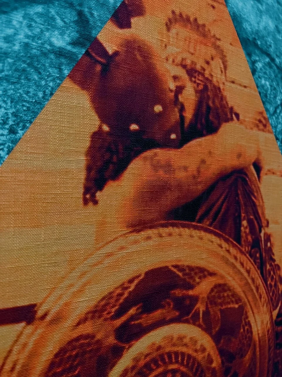 This work captures one of the earliest examples of a kiss between men in cinema. It is a still from the silent film Intolerance screened at The Mayfair (then known as Everybody’s Theatre) in 1917 where Prince Belshazzar kisses The Mighty Man of Valor (Belshazzar’s guard). The work is sited in a small room near the main theatre foyer that is half way through renovation. This symbolises that although Taranaki (and wider society) has come a long way in relation to queer rights and acceptance, there is still much work to be done.