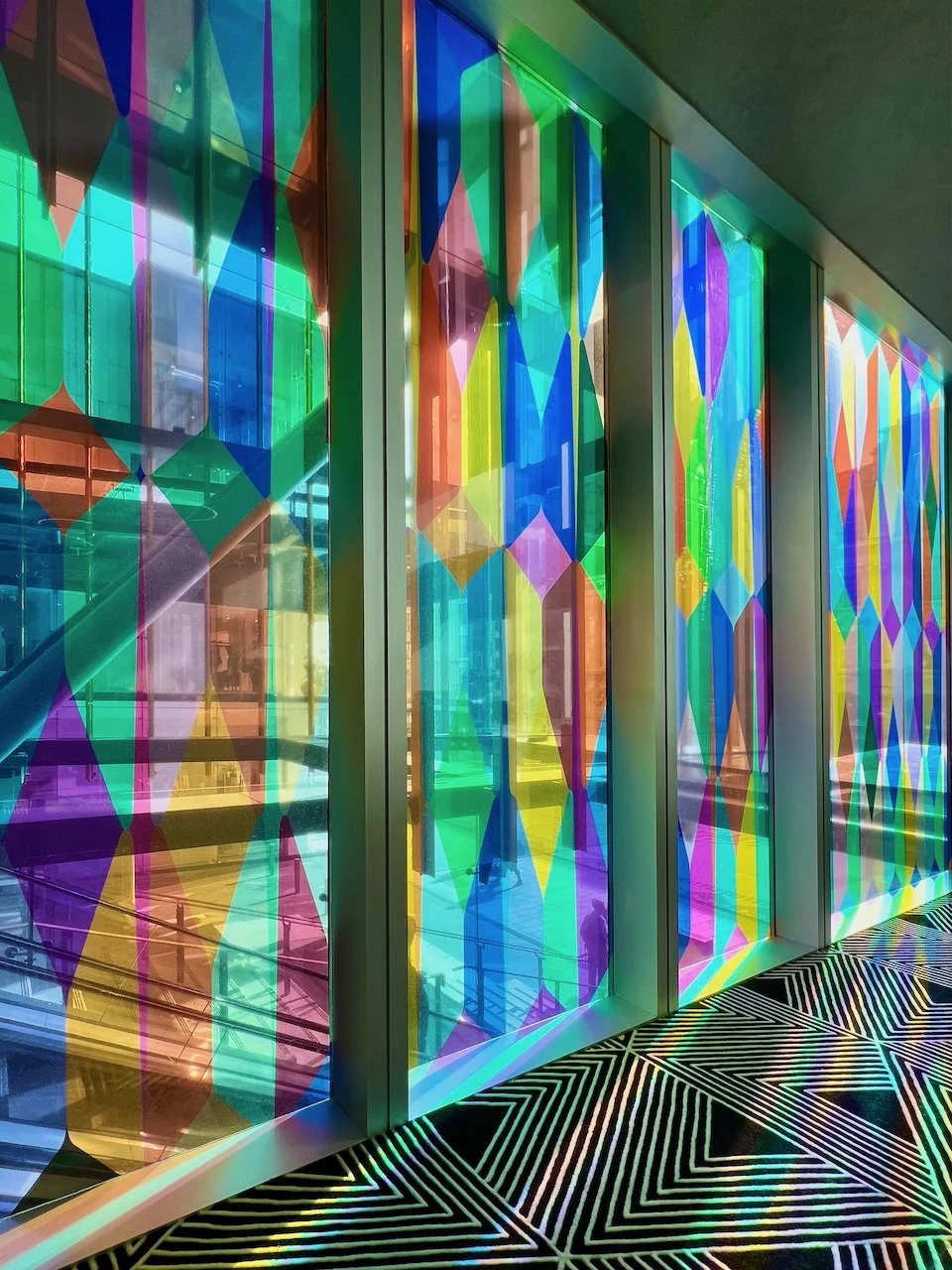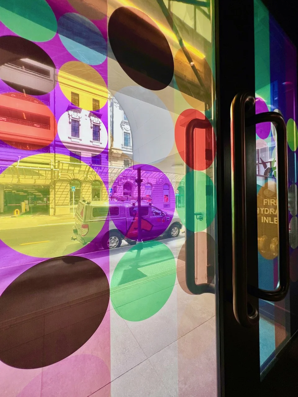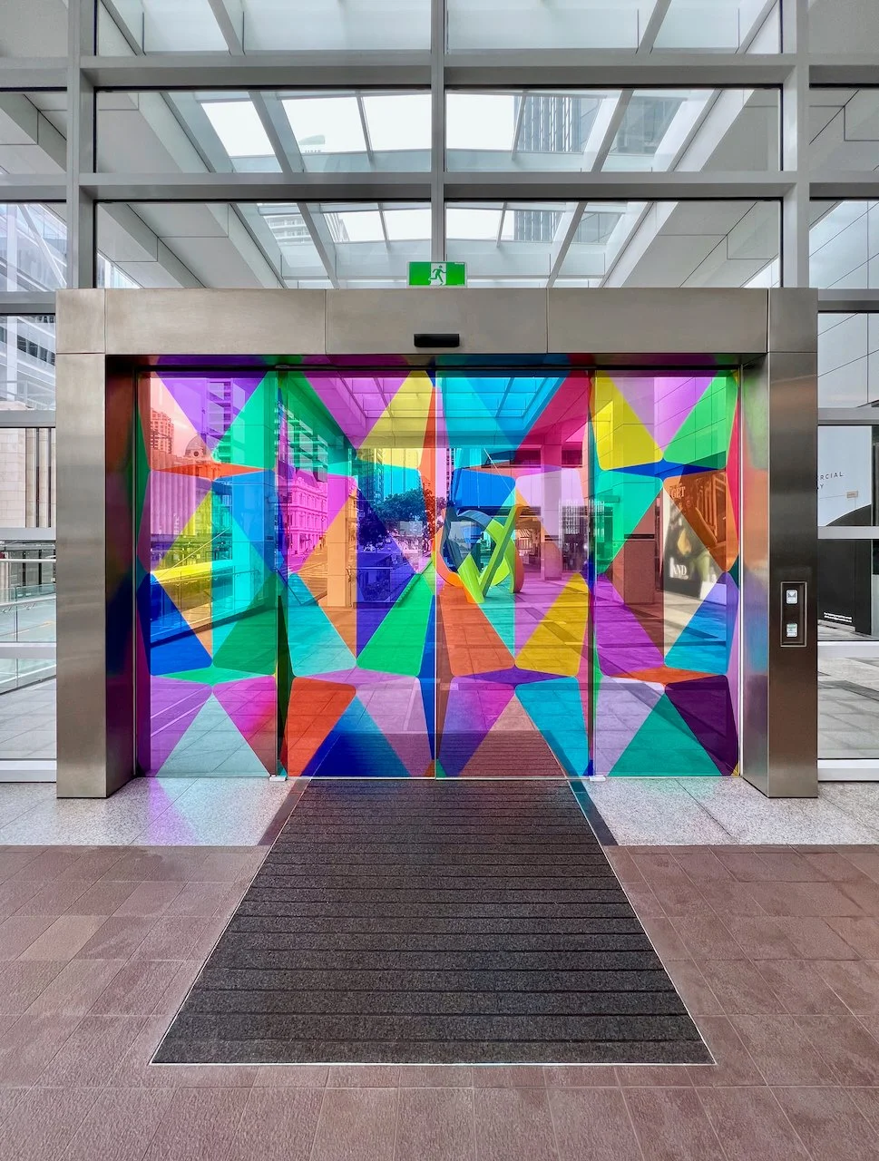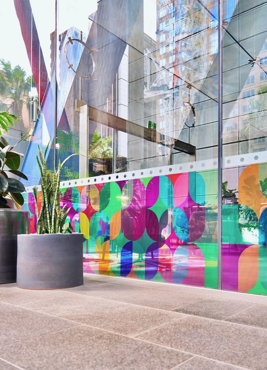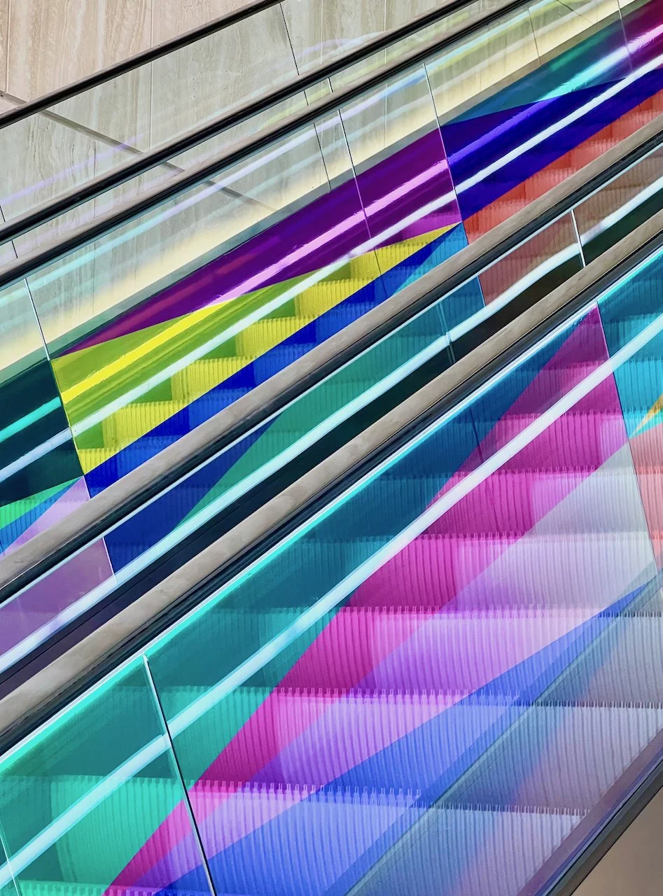 Refractions are glass based installations Novak began in 2011. Each refraction explores interactions between light, shape, and surface with a view to queering space. The name originates from Larry Bell’s Fractions, small works Bell began in 1996 that assemble elements of discarded works into new forms.