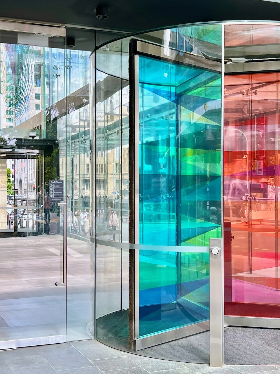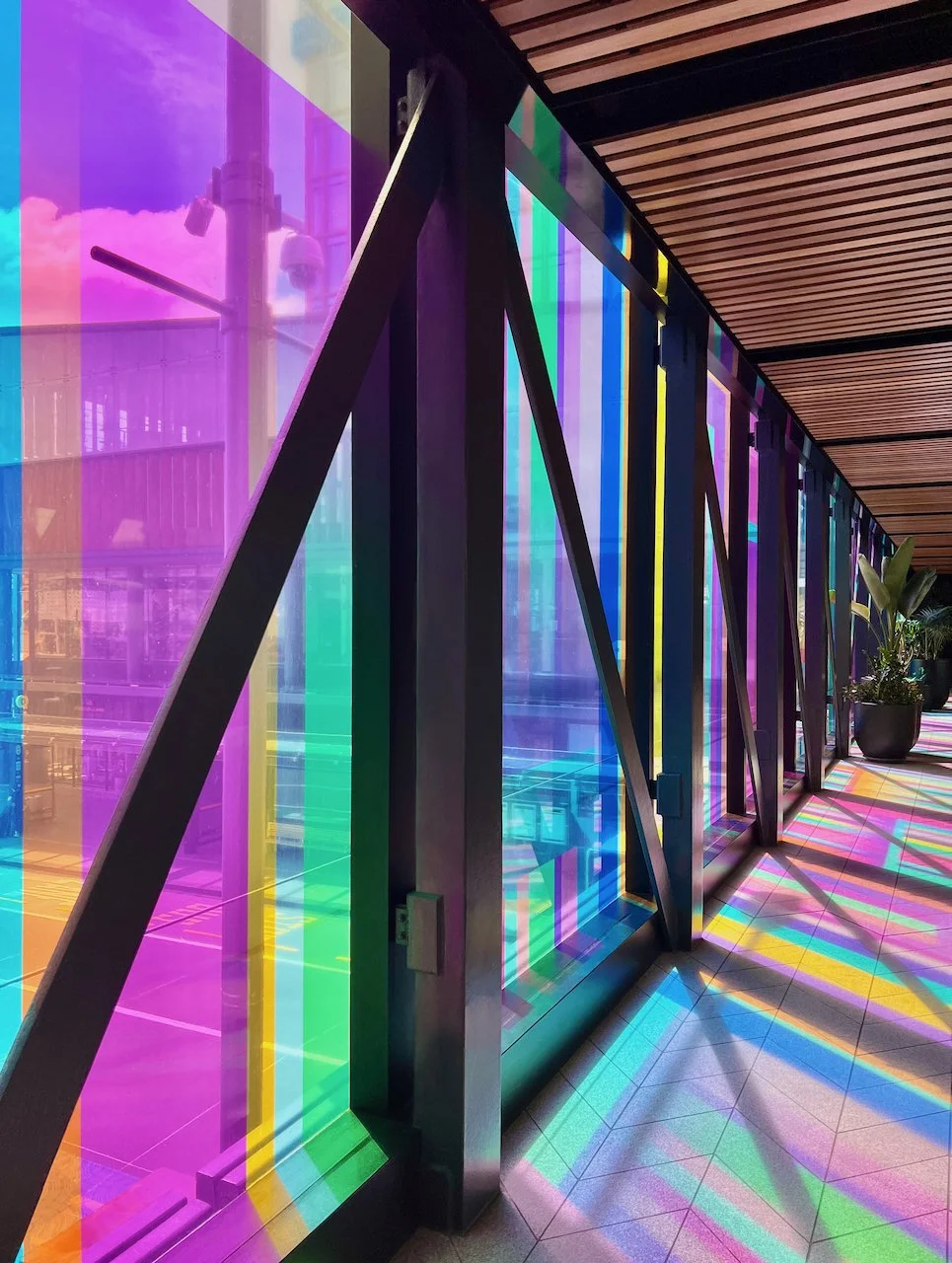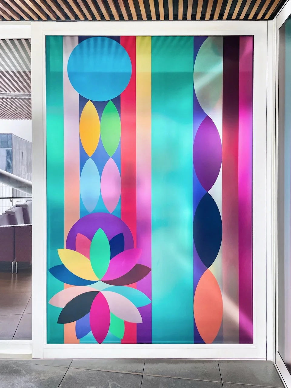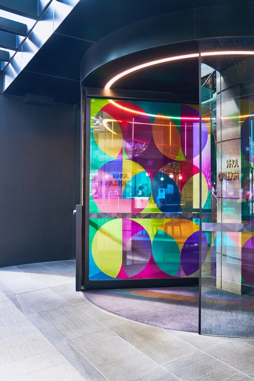 Refractions are glass based installations Novak began in 2011. Each refraction explores interactions between light, shape, and surface with a view to queering space. The name originates from Larry Bell’s Fractions, small works Bell began in 1996 that assemble elements of discarded works into new forms.
