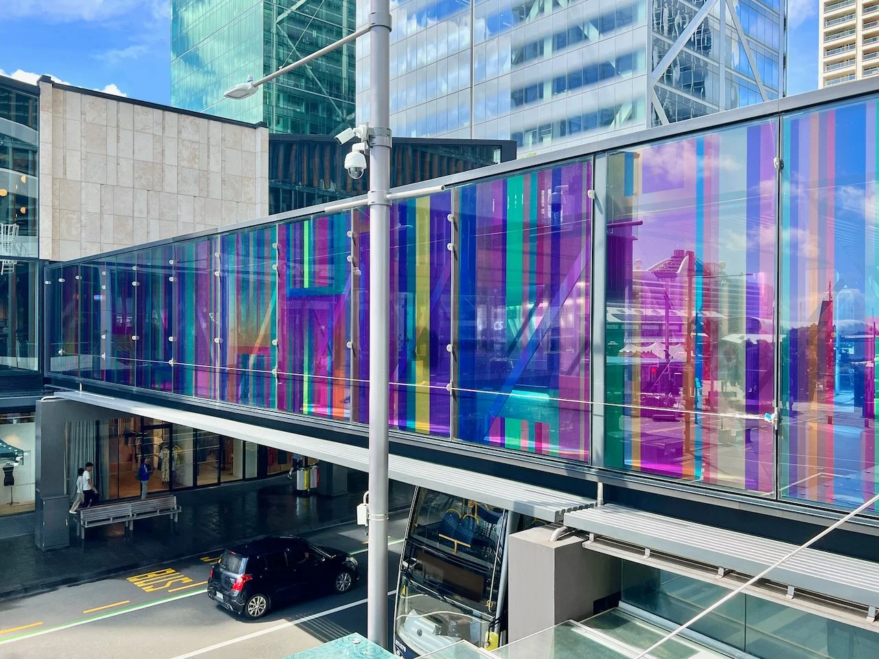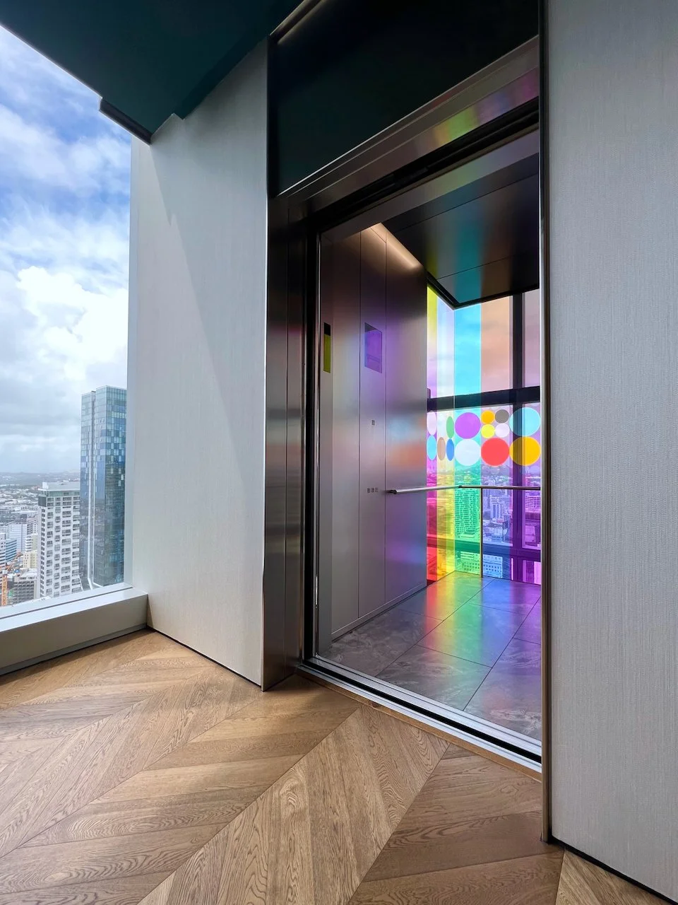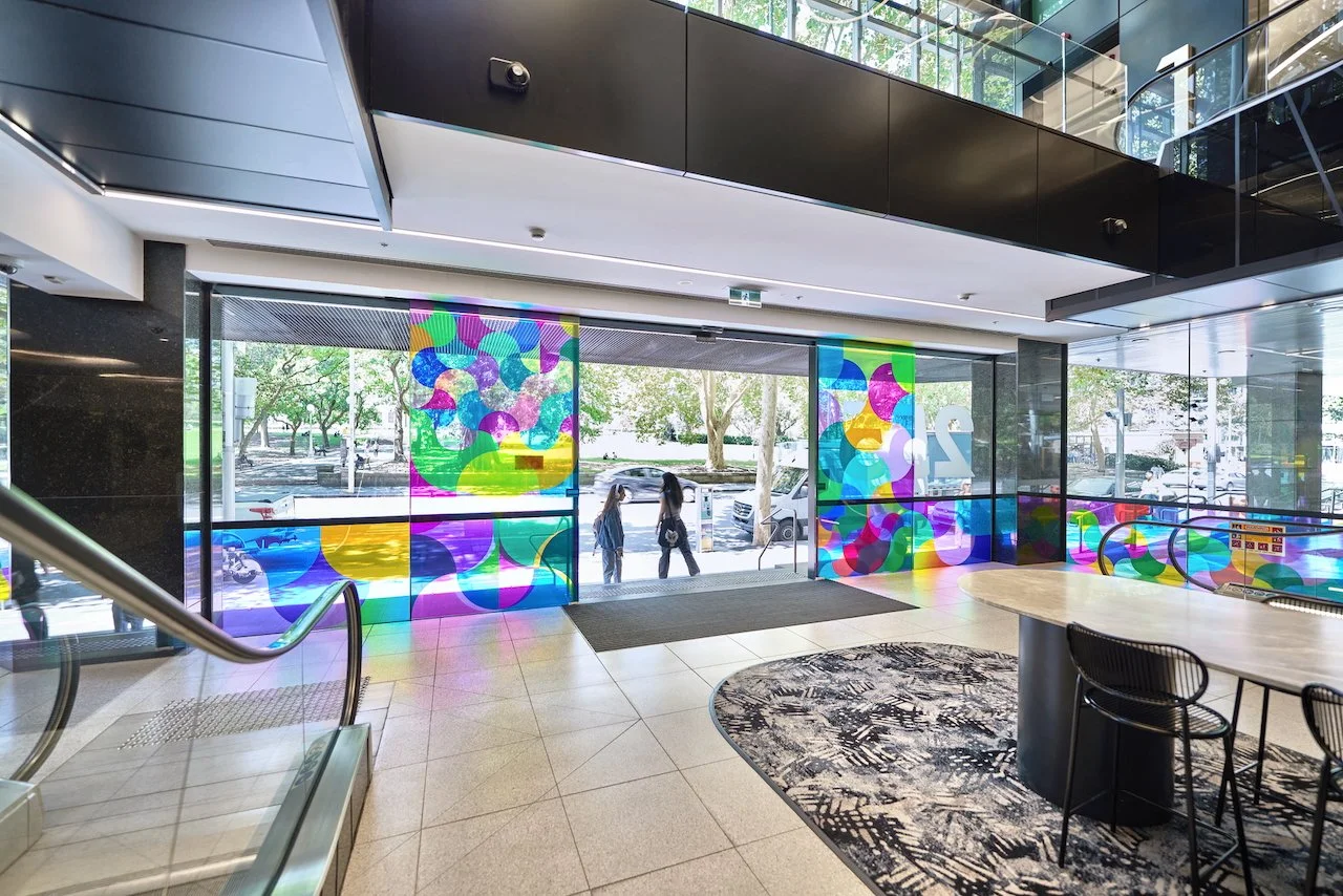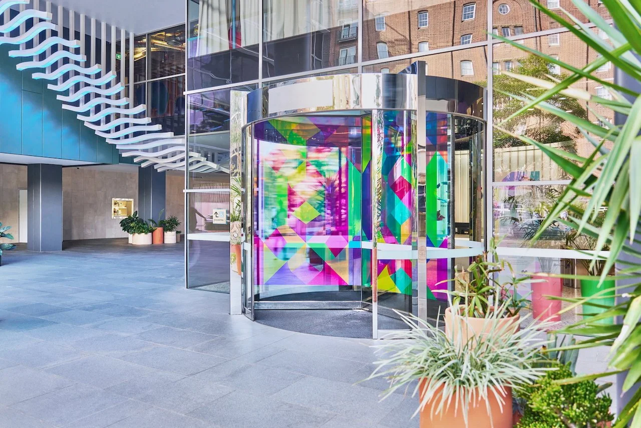 Refractions are glass based installations Novak began in 2011. Each refraction explores interactions between light, shape, and surface with a view to queering space. The name originates from Larry Bell’s Fractions, small works Bell began in 1996 that assemble elements of discarded works into new forms.