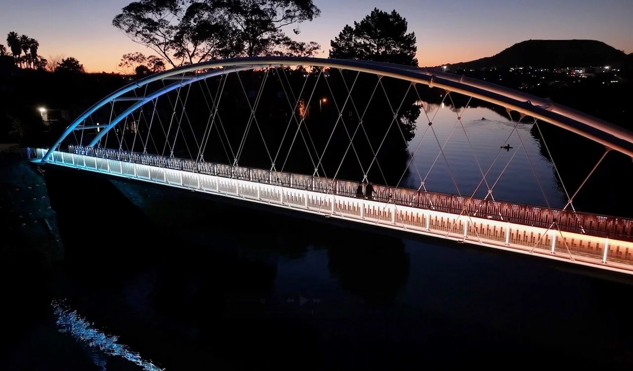 Data-driven lighting was developed for Te Kōpua o Hiku by Novak and Williams, with support from lighting designer Morgann Le Bars of Norwich Group and David Hayes of iion. The lighting is programmed to spotlight the arches and balustrades of the bridge, and with a weather station installed on-site, data from the prevailing wind is collected in real time and converted into a pattern of light pulsing with life across the bridge. The ‘breathing’ of the wind shown in the lighting is a metaphor for the breath of the local tupuna (ancestors), kaitiaki taniwha, and Aucklanders and visitors who enjoy the area.