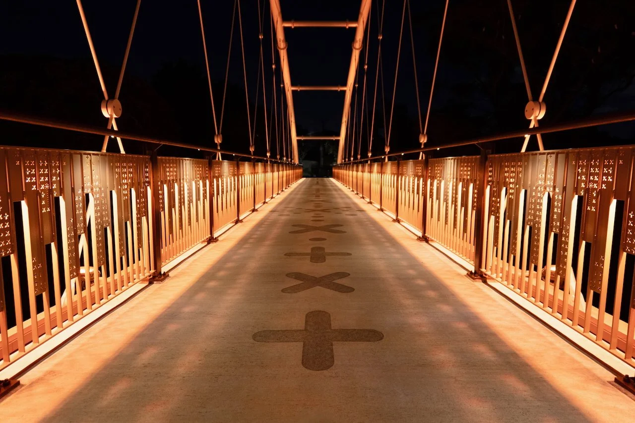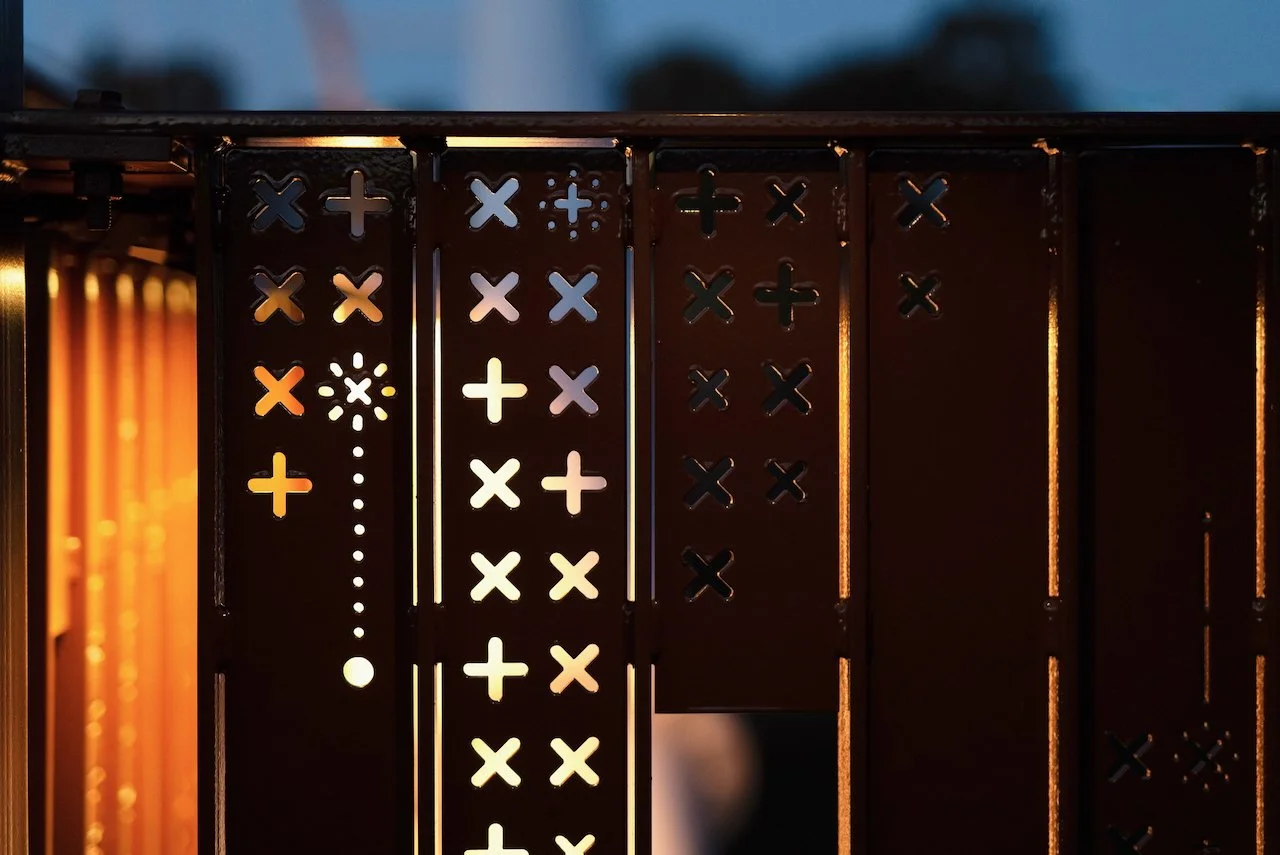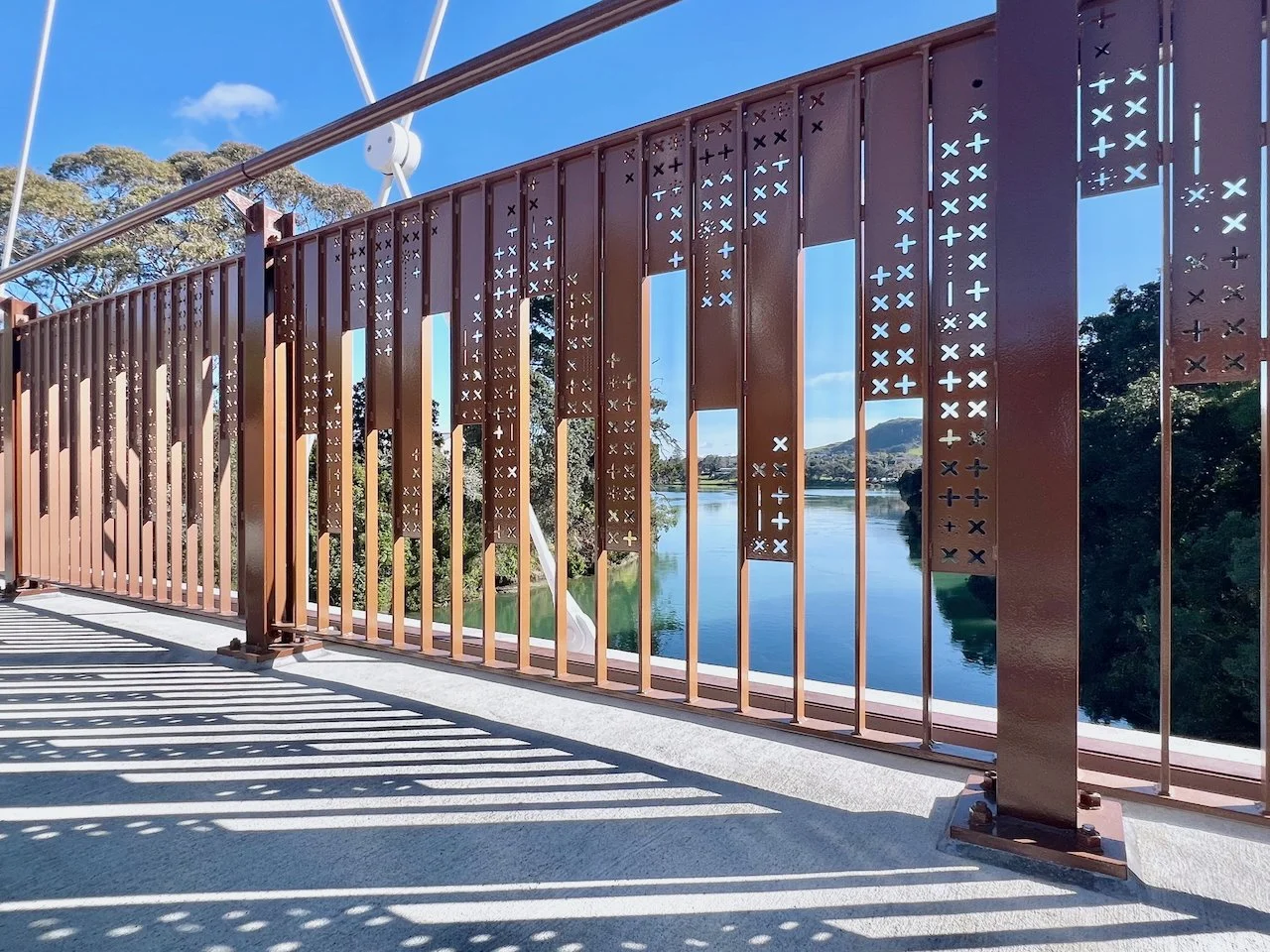 Novak and Williams developed a bi-cultural form of symbolism on the bridge deck and balustrades. Combining forms and shapes of Māori and Croatian descent, the pair infused iconography of protection and belonging. In Croatian history, markings on the fingers and hands of women and children were sometimes applied during war times to protect them from invading forces. Both cultures have histories where iconography - tā moko in Aotearoa - signifies belonging. There was a unique relationship struck between Māori and Dalmatian immigrants during the nineteenth century when working together in the kauri gum fields of the Far North, New Zealand. It was a relationship marked by mutual respect and resulted in the nickname “Tarara” in reference to the fast-speaking Croatians.