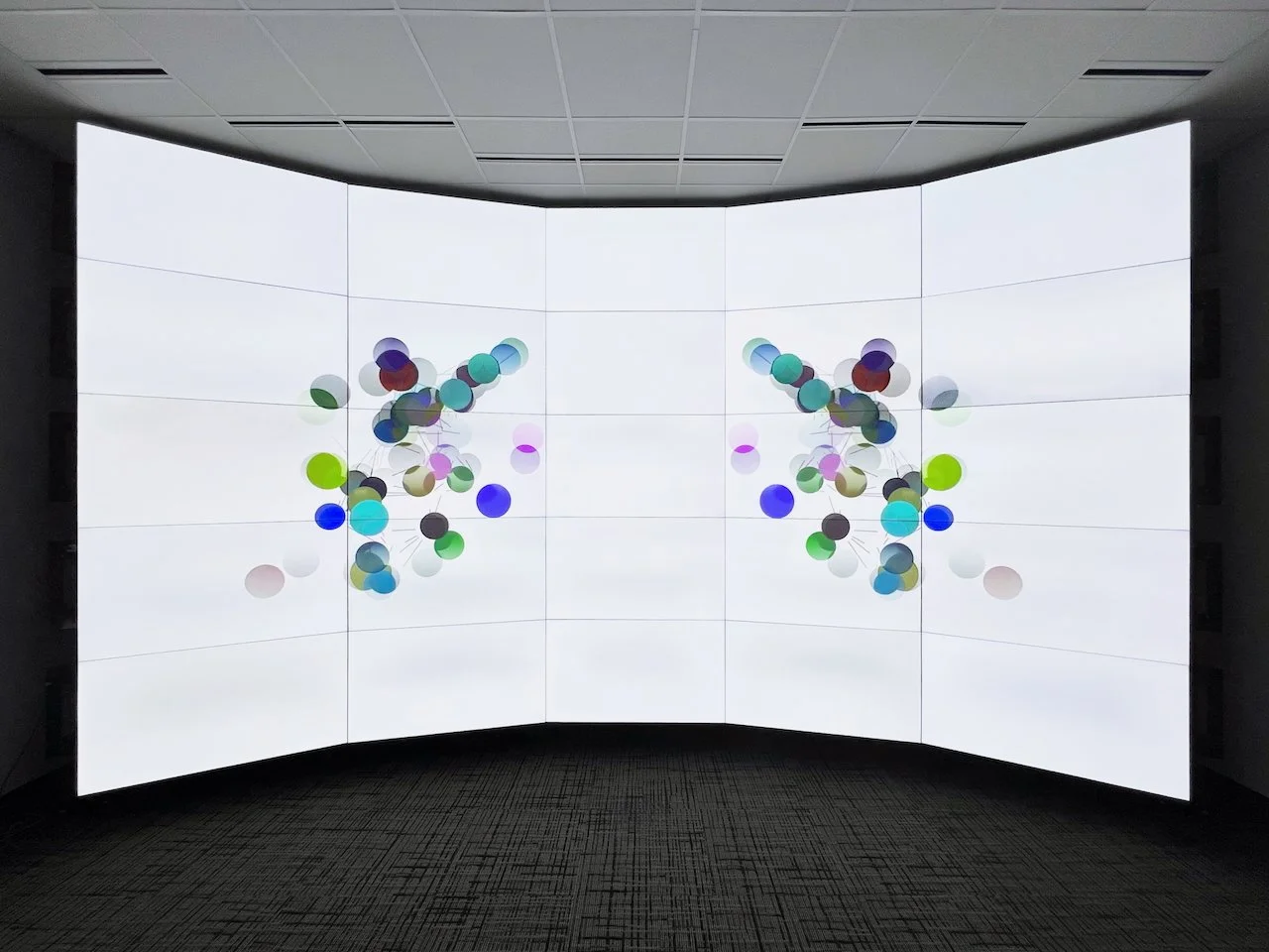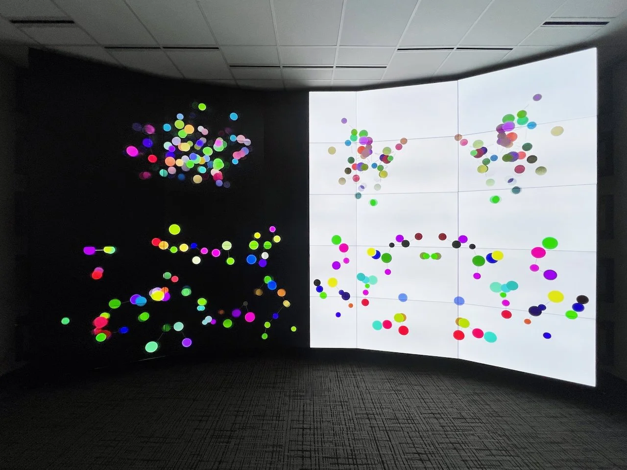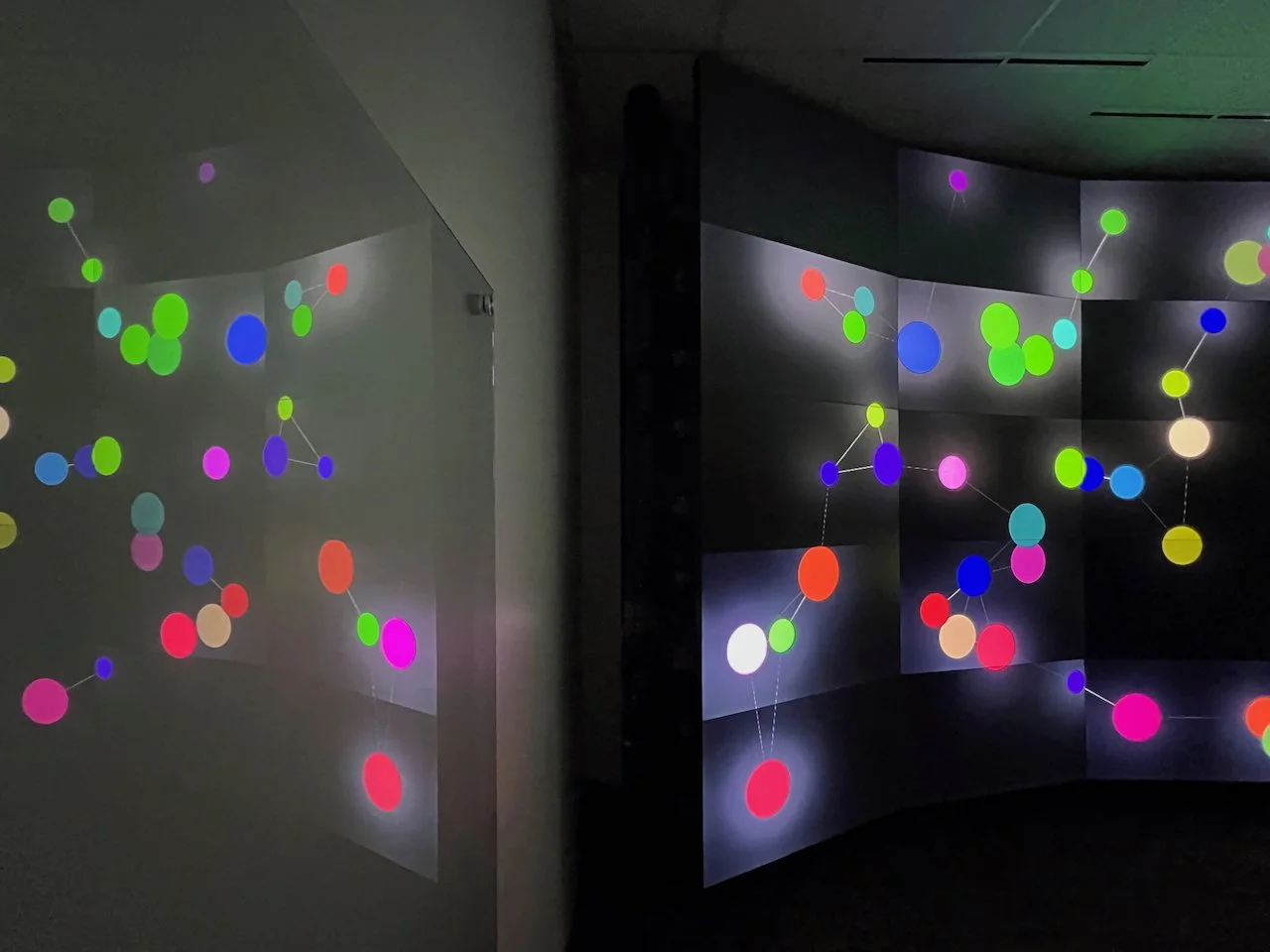 68 Points includes generative animation works, each made of 68 points (or landmarks) that explore and expose the weaponisation of AI-based facial recognition to analyse queer bodies in different ways. These were shown on campus using the HANA Immersive Visualisation Environment (HIVE).