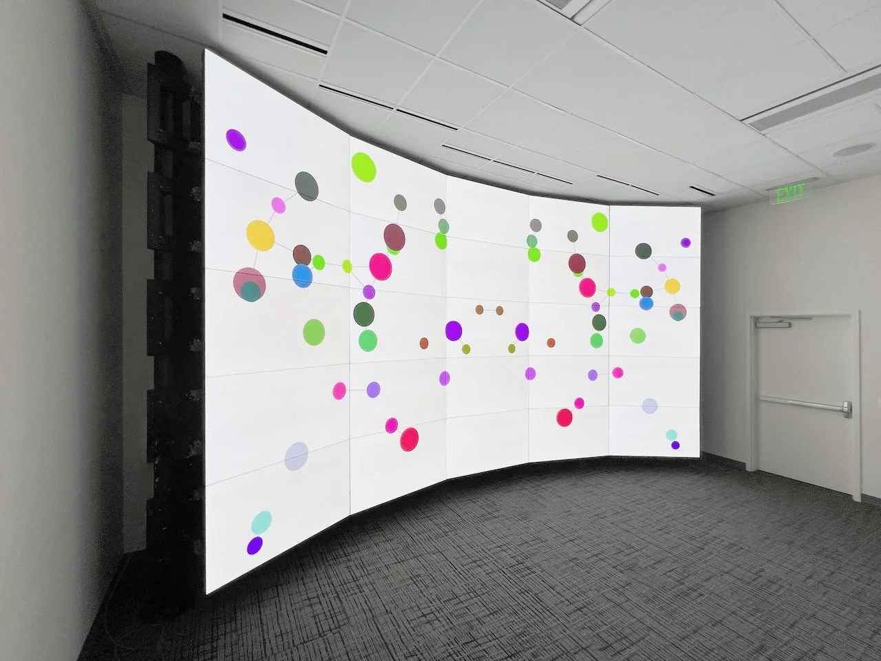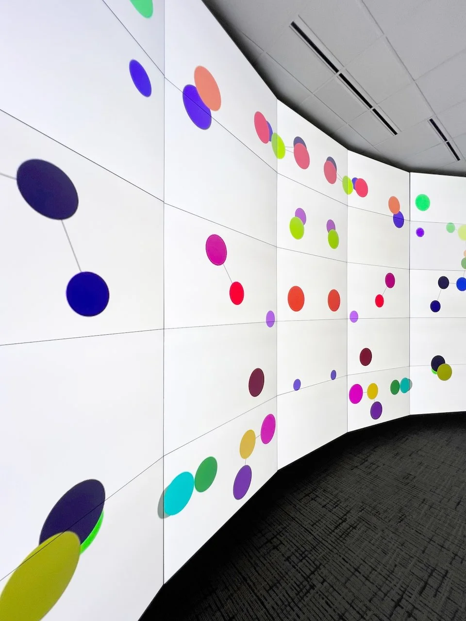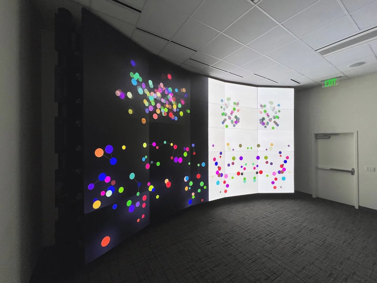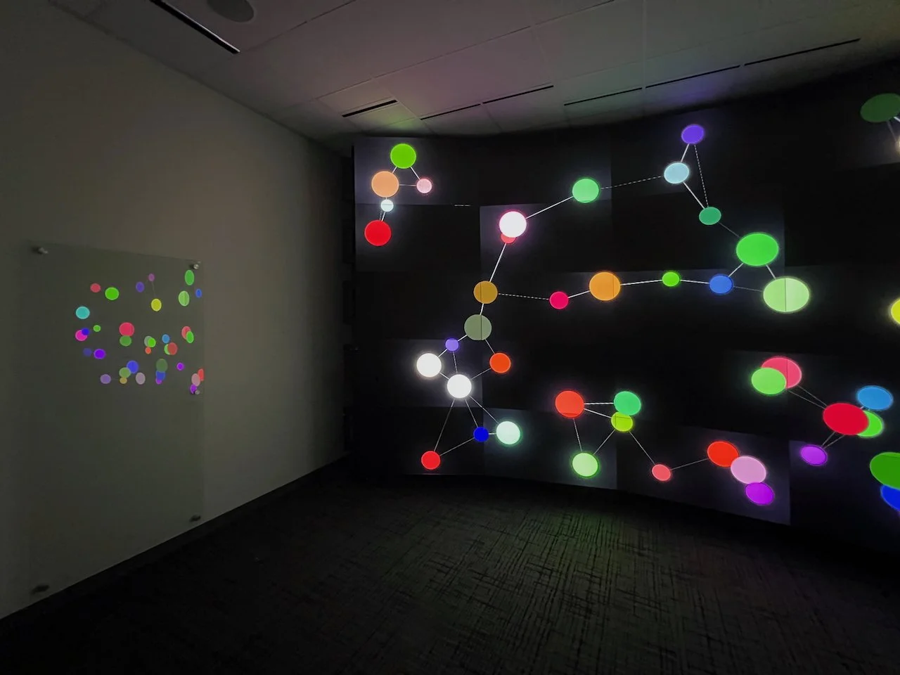 68 Points includes generative animation works, each made of 68 points (or landmarks) that explore and expose the weaponisation of AI-based facial recognition to analyse queer bodies in different ways. These were shown on campus using the HANA Immersive Visualisation Environment (HIVE).